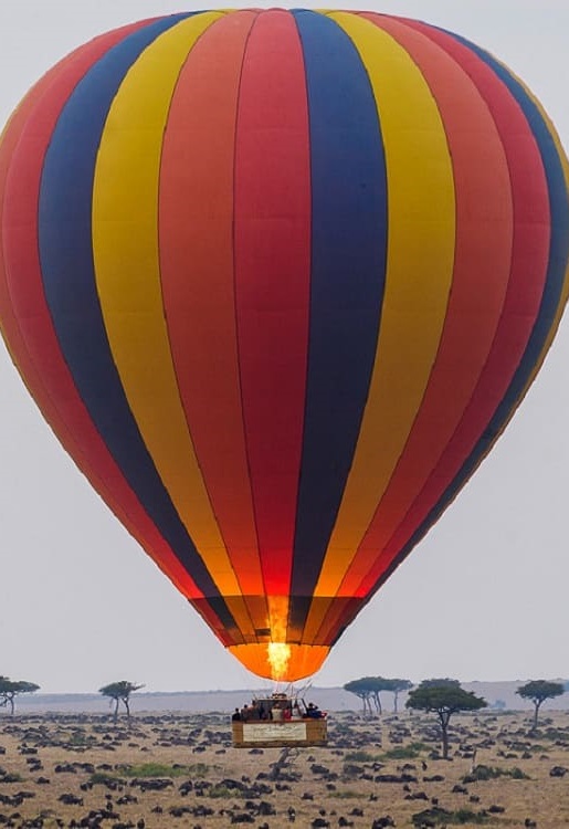 currents take you, with ample photography and video filming opportunities. Then your Kenyan Hot Air Balloon Safari finishes with a flourish. In the time-honored tradition of balloon flights the world over, you will indulge in a post-flight champagne breakfast in the bush. The Balloon Safari ends with a transfer back to camp.